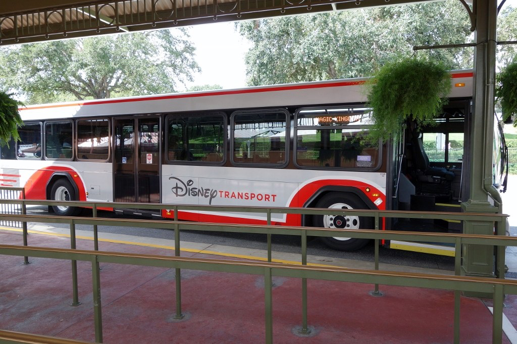 Bus Depot – You can take Disney transportation/bus from Disney Springs to a park or a resort. On this day, since running a bit late we needed to eat. We couldn’t wait to try the Mickey Beignets at Port Orleans Resort — French Quarter. So we took a bus there first. Other options for Disney transportation are the ferry, the monorail (which we took once at Magic Kingdom), and Minnie Vans (additional cost).