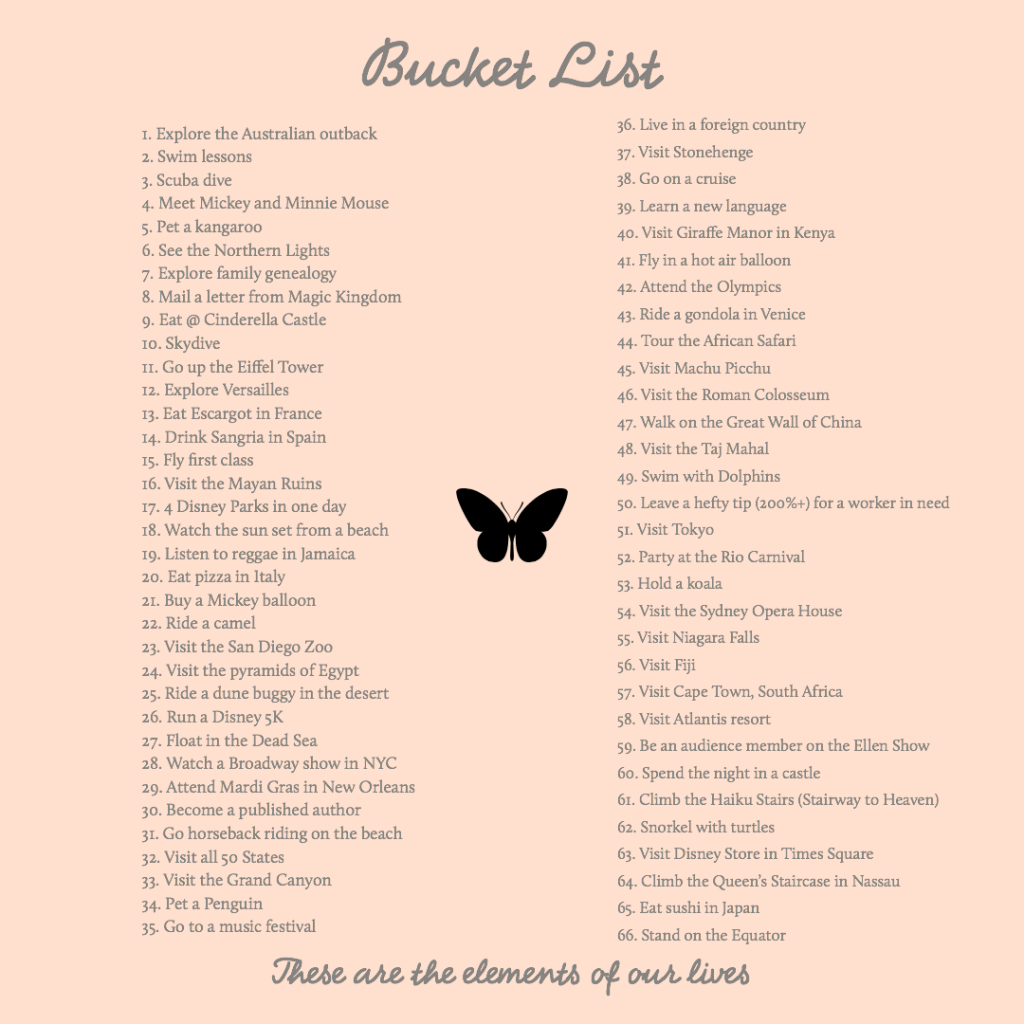 The journey has always been about providing more than I had growing up and sharing new and exciting experiences. So far, I think we’ve done okay. Based on the above bucket list, so far we’ve crossed off the following: